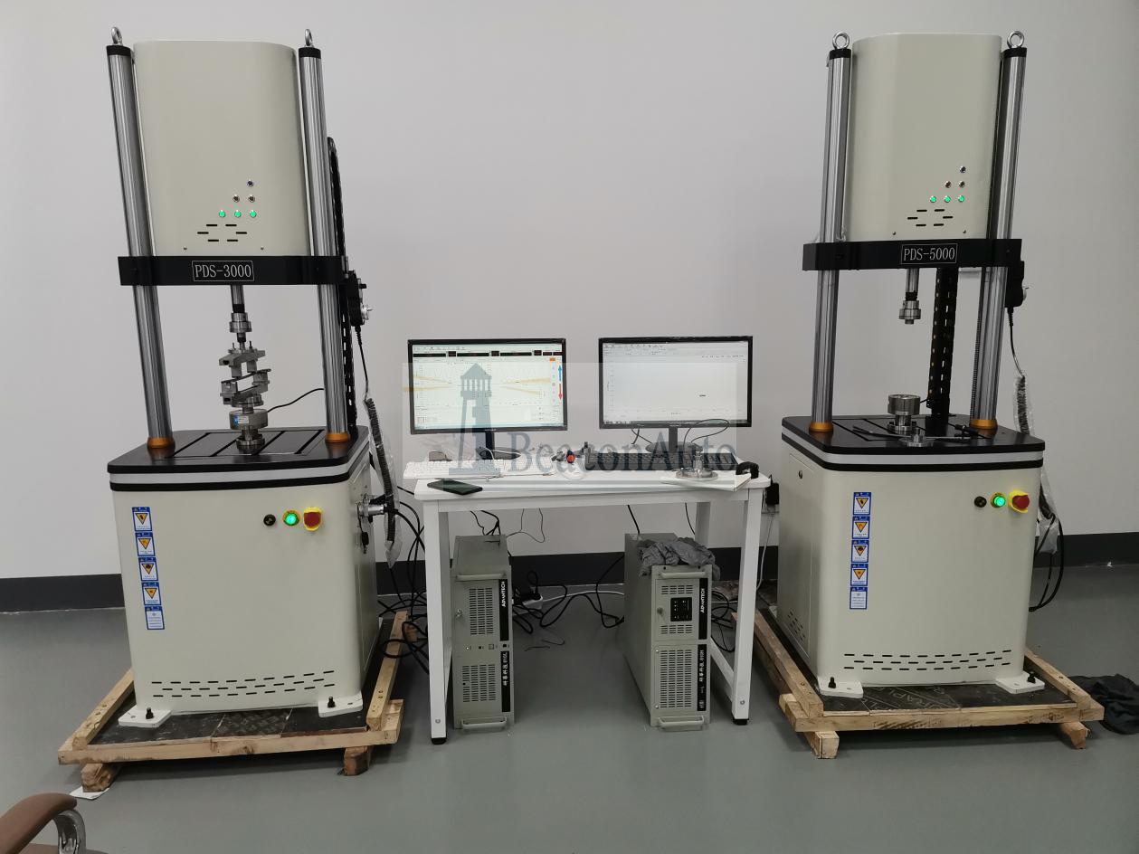 PDSN3000疲勞測試系統(tǒng) PDSN3000疲勞測試系統(tǒng)系列產(chǎn)品簡介: PDSN系列微機控制動靜態(tài)疲勞測試系統(tǒng),是我公司研制的系列動態(tài)疲勞加載試驗系統(tǒng)產(chǎn)品之一。該系列產(chǎn)品具有輸出力范圍廣,控制精度高,使用方便,可靠性高等特點。該系列試驗系統(tǒng)在研制、開發(fā)過程中吸取國際先進的電動伺服缸的驅動技術,結合國內用戶的實際使用狀況設計而成。伺服作動器、選用進口、加載框架等關鍵部件為我公司設計制造,控制器自主研發(fā),大大提高了系統(tǒng)的穩(wěn)定性和可靠性,試驗機的整體性能與國際先進產(chǎn)品技術水平相當。 PDSN3000疲勞測試系統(tǒng),既能進行動態(tài)的高、低周疲勞試驗、程序控制疲勞試驗,也能進行靜態(tài)的恒速率、恒應變、恒應力控制下的試驗和各種常規(guī)的力學性能試驗,還可進行斷裂力學試驗,也可以對廣義范圍上材料或構件的疲勞壽命、裂紋擴展、斷裂韌性性能測試、實際試件的安全性評價、工況模擬等,因此有著其它任何種類的試驗機所不能比擬的優(yōu)勢,是國際疲勞力學研究領域界最推崇的材料試驗設備。 由于PDSN3000疲勞測試系統(tǒng)采用自適應無間隙的電動伺服作動器,頻響速度快,噪音低,節(jié)能環(huán)保,非常適合企業(yè)和研究機構對小零部件的研究測試! PDSN3000疲勞測試系統(tǒng)優(yōu)勢特點: ?無需油源的直線電機技術,保證潔凈的測試環(huán)境 ? 軸向通道采用Can總線式控制方式 ? 高速直線作動器 ? 獨特的驅動器軸承系統(tǒng),確保由于樣品和夾具的偏移或是有側向力情況下,加載鏈仍處于對中狀態(tài) ? 適用于各種材料和元器件的動靜態(tài)測試 ? 高動態(tài)性能,頻率最大可達50 Hz ? ±3000N 最大動態(tài)軸向載荷 ? 光學編碼器用于精確的數(shù)字位移控制,及對試樣的變形控制。 ? 單相電源驅動,無需額外液壓油源、冷卻水、氣動空氣 ? 基于業(yè)內先進控制方式的數(shù)字控制器 ? 高剛度、精確對準的雙立柱加載框架與位于橫梁上的驅動器 ? Dcell 先進載荷傳感器技術,實現(xiàn)更快測試,減少慣性差 ? 靈活多樣的T型臺底座,適用于裝配各種規(guī)則/不規(guī)則的夾具和樣品 ? 儀器設計緊湊簡潔 – 機架占地面積不到0.5 m2   PDSN3000疲勞測試系統(tǒng)主要技術指標 l 最大試驗力:±3000N; l 最大扭矩:20Nm l 試驗力示值精度:2%-100%FS范圍內,各點均為小于±1.0%; l 試驗力動態(tài)示值波動度:0.5%FS; l 作動器最大位移:±50mm;示值精度±0.5%FS; l 擺動作動器擺動角度;±1080 l 主要試驗波形:正弦波、方波、三角波、斜波等。 l 軸向試驗頻率:0.01-20Hz; l 軸向試驗頻率:0.01-5Hz; l 測試空間:600*600*800  更多PDSN3000疲勞測試系統(tǒng)資料請電話聯(lián)系我們。