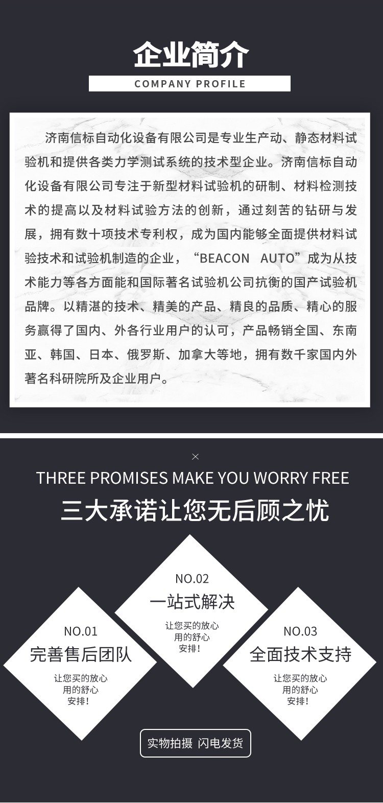 濟南信標自動化設備有限公司主要生產:動靜態(tài)萬能疲勞試驗機,接骨板彎曲試驗機,縫合線拉伸疲勞試驗機,髖膝關節(jié)磨損試驗機,電子萬能試驗機、液壓萬能試驗機、巖石三軸、四軸,電液拉力試驗機,材料試驗機,高低溫蠕變,高低頻疲勞,拉伸、扭轉、杯突等二十多個系列兩千多個的品種。