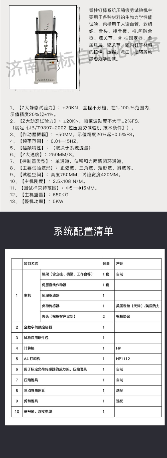 濟南信標自動化設備有限公司主要生產(chǎn):動靜態(tài)萬能疲勞試驗機,接骨板彎曲試驗機,縫合線拉伸疲勞試驗機,髖膝關節(jié)磨損試驗機,電子萬能試驗機、液壓萬能試驗機、巖石三軸、四軸,電液拉力試驗機,材料試驗機,高低溫蠕變,高低頻疲勞,拉伸、扭轉、杯突等二十多個系列兩千多個的品種。