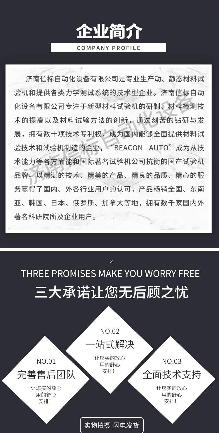 濟(jì)南信標(biāo)自動化設(shè)備有限公司主要生產(chǎn):動靜態(tài)萬能疲勞試驗機(jī),接骨板彎曲試驗機(jī),縫合線拉伸疲勞試驗機(jī),髖膝關(guān)節(jié)磨損試驗機(jī),電子萬能試驗機(jī)、液壓萬能試驗機(jī)、巖石三軸、四軸,電液拉力試驗機(jī),材料試驗機(jī),高低溫蠕變,高低頻疲勞,拉伸、扭轉(zhuǎn)、杯突等二十多個系列兩千多個的品種。