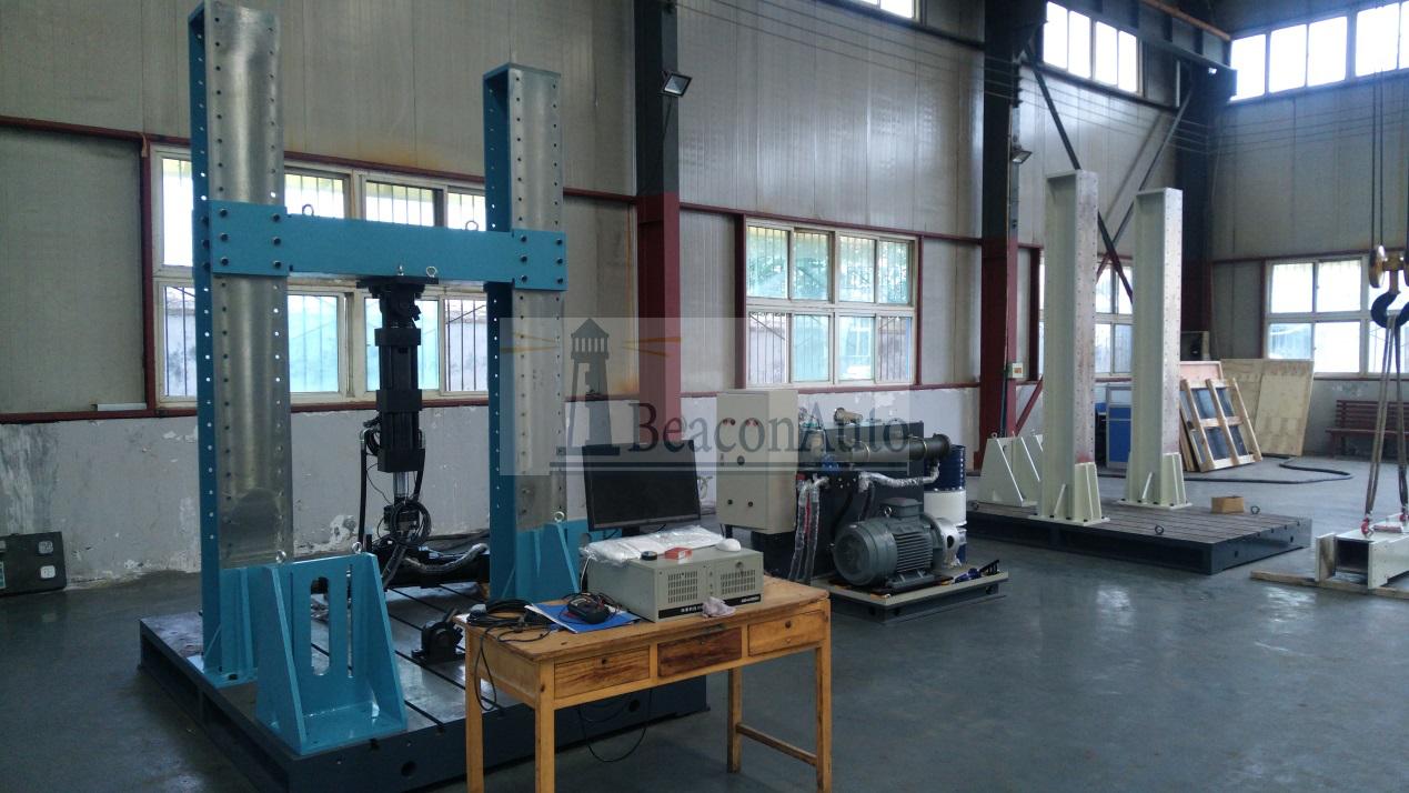 汽車配件三角臂多通道力學(xué)加載試驗(yàn)系統(tǒng) 關(guān)鍵詞:三角臂反復(fù)加載疲勞試驗(yàn)機(jī),控制臂疲勞試驗(yàn)機(jī),平衡桿反復(fù)加載壓力試驗(yàn)機(jī),汽車車間加載試驗(yàn)機(jī)。 汽車配件三角臂多通道力學(xué)加載試驗(yàn)系統(tǒng)產(chǎn)品用途: 汽車配件三角臂多通道力學(xué)加載試驗(yàn)系統(tǒng)適用于主要應(yīng)用于汽車車架,駕駛室,三角臂,控制臂,平衡桿,減震器等力學(xué)性能的試驗(yàn)研究。主要用途包括:完成被測試件的低周反復(fù)加載,保載、卸載等常規(guī)試驗(yàn)。 該系列產(chǎn)品具有輸出力范圍廣,控制精度高,使用方便,可靠性高等特點(diǎn)。該系統(tǒng)在研制、開發(fā)過程中吸取國際先進(jìn)電液伺服控制技術(shù),結(jié)合國內(nèi)用戶的實(shí)際使用狀況設(shè)計(jì)而成。伺服作動器、伺服動力液壓站、力加載框架等關(guān)鍵部件為我公司設(shè)計(jì)制造,伺服閥、傳感器、密封件等關(guān)鍵外購件均選用國際、國內(nèi)同類產(chǎn)品的著名品牌產(chǎn)品,大大提高了系統(tǒng)的穩(wěn)定性和可靠性,試驗(yàn)機(jī)的整體性能與國際先進(jìn)產(chǎn)品技術(shù)水平相當(dāng)。 該試驗(yàn)系統(tǒng),既能低周疲勞試驗(yàn)、程序控制疲勞試驗(yàn),也能進(jìn)行靜態(tài)的恒速率、恒應(yīng)變、恒應(yīng)力控制下的試驗(yàn)和各種常規(guī)的力學(xué)性能試驗(yàn),還可進(jìn)行斷裂力學(xué)試驗(yàn),自然力量模擬試驗(yàn),如地震、風(fēng)浪等。根據(jù)需要也可以進(jìn)行部分的工況模擬等,因此有著其它任何種類的試驗(yàn)機(jī)所不能比擬的優(yōu)勢; 在實(shí)際測試方面我們有針對結(jié)構(gòu)試驗(yàn)而設(shè)計(jì)的大噸位作動器,作動器形式有單出桿和雙出桿兩種結(jié)構(gòu)形式,輸出力范圍從100kN到10000kN,行程可根據(jù)用戶實(shí)際需求而定,作動器標(biāo)準(zhǔn)行程200--500mm(±100mm/±250mm),根據(jù)結(jié)構(gòu)試驗(yàn)要求可配置不同規(guī)格的作動器,廣泛應(yīng)用于車輛車架,、復(fù)合結(jié)構(gòu)件材料的靜態(tài)力學(xué)性能試驗(yàn),包括拉伸、壓縮、三點(diǎn)四點(diǎn)彎曲試驗(yàn)、;也可以進(jìn)行結(jié)構(gòu)件的疲勞試驗(yàn),如長平衡桿,轉(zhuǎn)臂,花鍵軸等。從簡單的靜態(tài)結(jié)構(gòu)試驗(yàn)到原尺寸大型構(gòu)件路普模擬試驗(yàn),從單通道試驗(yàn)到大型構(gòu)件試驗(yàn)室配置,從整車車身到三軸橡膠套試驗(yàn),該系列設(shè)備均可為你提供極大的幫助,可以助你驗(yàn)證新概念、開發(fā)更新、更有效、更經(jīng)濟(jì)的土木材料和結(jié)構(gòu)。 汽車配件三角臂多通道力學(xué)加載試驗(yàn)系統(tǒng)主要組成部分有: 1.自平衡門式反力框架、1套 2.伺服作動器:20KN雙出桿作動器2只; 3.伺服動力液壓站;大流量遠(yuǎn)程控制伺服液壓系統(tǒng),包括分油閥塊和管路。 4.?dāng)?shù)據(jù)采集控制系統(tǒng):三多通道靜載控制器,包括擴(kuò)展采集和軟件 5.各路力傳感器和位移傳感器 6. 根據(jù)需要配置各種球鉸支座 汽車配件三角臂多通道力學(xué)加載試驗(yàn)系統(tǒng)主要技術(shù)指標(biāo) 1l最大垂向負(fù)荷: 拉壓雙向20kN x1 2l最大橫向負(fù)荷: 拉壓雙向20kN x1 3l試驗(yàn)力精度: ±0.5%; 4l試驗(yàn)力測量范圍: 2%~100%FS(全程不分檔) 5l試驗(yàn)力分辨率: 500000碼,且全程分辨率不變 6l水平/垂向測試頻率: 0.1-15hz (15hz 對應(yīng)5mm) 7l垂向作動器行程: ±100mm 8l橫向作動器行程: ±100mm 9l位移分辨率: 0.001mm; 10l位移測量精度: ±0.5%; 11l進(jìn)口內(nèi)置式位移傳感器精度: 優(yōu)于±0.1%; 12l過載保護(hù): 105%過載保護(hù)(無變形、無機(jī)械損傷) 13l整機(jī)噪聲: 不超過70dB 14l測力方式:采用高精度負(fù)荷傳感器測力 美國 15 控制方式:液壓加載,電液伺服閉環(huán)控制,屏幕直接顯示試驗(yàn)結(jié)果 16 液壓動力源:封閉靜音結(jié)構(gòu) 可移動式 17 管路和分油器:適應(yīng)場地結(jié)構(gòu)的高壓H型膠管及接頭 18 遠(yuǎn)程:遠(yuǎn)程升降控制,遠(yuǎn)程伺服動力源控制 19 總線:多級多路輸出輸入線路總裝 更多汽車配件三角臂多通道力學(xué)加載試驗(yàn)系統(tǒng)資料請電話聯(lián)系我們。