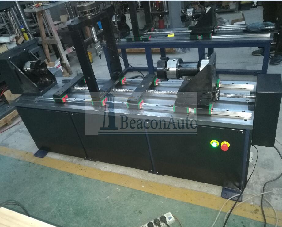 主要技術(shù)指標(biāo) 試驗(yàn)及級(jí)別:1級(jí) 最大拉伸試驗(yàn)力: 10000N 最大試驗(yàn)扭矩: 50 Nm 最大徑向試驗(yàn)力: 500N 位移最小讀數(shù):0.01mm 位移最大讀數(shù):600.00mm 角位移最大讀數(shù):999.99度 角位移最小讀數(shù):0.1度 最大行程:1200mm 電源:220V 50Hz 扭轉(zhuǎn)部分: 1.軸流風(fēng)扇靜態(tài)扭轉(zhuǎn)試驗(yàn)機(jī)項(xiàng)目簡(jiǎn)介 扭轉(zhuǎn)部分是由加載系統(tǒng)、傳動(dòng)系統(tǒng)、數(shù)字式數(shù)據(jù)采集處理系統(tǒng)及計(jì)算機(jī)測(cè)量控制顯示系統(tǒng)等組成,適用于對(duì)軸流風(fēng)扇靜態(tài)扭轉(zhuǎn)力學(xué)的性能測(cè)試。該機(jī)采用落地臥式結(jié)構(gòu)。計(jì)算機(jī)屏幕顯示,數(shù)字式數(shù)據(jù)采集控制系統(tǒng)和全數(shù)字交流伺服系統(tǒng)組成閉環(huán)控制。采用行星擺線針輪減速器傳動(dòng),具有加載均勻、穩(wěn)定、無(wú)沖擊現(xiàn)象、數(shù)據(jù)采集控制準(zhǔn)確的特點(diǎn)。 試驗(yàn)測(cè)試功能:Win2000/XP中文操作平臺(tái)。使用以圖形為界面的視窗式操作系統(tǒng),可設(shè)定顯示屏幕及操作面板;可設(shè)定試驗(yàn)速度及各種控制參數(shù);可實(shí)時(shí)顯示基本試驗(yàn)結(jié)果(斷裂值、峰值);可實(shí)時(shí)顯示試驗(yàn)過(guò)程各種相關(guān)參數(shù)圖形;可實(shí)現(xiàn)系統(tǒng)診斷并顯示診斷結(jié)果。試驗(yàn)機(jī)實(shí)現(xiàn)分級(jí)管理權(quán)限。不同的用戶可進(jìn)入不同的管理界面、分三級(jí)用戶管理權(quán)限。 整機(jī)利用全數(shù)字交流伺服控制系統(tǒng)及數(shù)字式數(shù)據(jù)采集處理系統(tǒng),光電編碼器采集試樣的扭轉(zhuǎn)角度。 2.目的: 軸流風(fēng)扇的靜態(tài)扭轉(zhuǎn)實(shí)驗(yàn) 3.軸流風(fēng)扇靜態(tài)扭轉(zhuǎn)試驗(yàn)機(jī)方案描述 【主 機(jī)】采用臥式結(jié)構(gòu),主體結(jié)構(gòu)采用焊接結(jié)構(gòu),以保證整機(jī)的剛性。夾具采用優(yōu)質(zhì)合金結(jié)構(gòu)鋼40CrNiMoA淬火(HRC45~50)方式,主傳動(dòng)軸采用優(yōu)質(zhì)合金結(jié)構(gòu)鋼淬火處理,保證其使用壽命。試樣的安裝、拆卸方便、快捷。 【驅(qū)動(dòng)系統(tǒng)】由全數(shù)字交流伺服控制系統(tǒng)驅(qū)動(dòng)。速度調(diào)節(jié)范圍寬,加載均勻、穩(wěn)定。 【傳動(dòng)系統(tǒng)】采用行星擺線針輪減速器傳動(dòng),保證傳動(dòng)的均勻、穩(wěn)定及傳動(dòng)精度??v向空間可以根據(jù)汽車半軸的規(guī)格進(jìn)行調(diào)整,橫向空間根據(jù)驅(qū)動(dòng)橋的規(guī)格任意手動(dòng)調(diào)節(jié)。 【測(cè)量顯示系統(tǒng)】該機(jī)采用光電編碼器采集試樣的扭轉(zhuǎn)角度,高精度扭矩傳感器采集試樣的扭矩。計(jì)算機(jī)屏幕顯示試樣的扭矩、扭轉(zhuǎn)角度、扭轉(zhuǎn)剛度以及各類曲線等。 【軟件操作】 ★控制模式采用智能專家設(shè)置系統(tǒng),用戶可以根據(jù)自己的實(shí)際要求編制試驗(yàn)過(guò)程控制方式,自動(dòng)完成試驗(yàn)。 ★ Windows2000/XP全中文界面,人機(jī)對(duì)話方式。試驗(yàn)的全部操作均借助CRT,通過(guò)計(jì)算機(jī)鍵盤與鼠標(biāo)完成,計(jì)算機(jī)屏幕顯示試驗(yàn)扭矩T,扭轉(zhuǎn)角度θ,扭轉(zhuǎn)次數(shù),各種試驗(yàn)曲線(扭矩-時(shí)間曲線、扭矩-角度曲線、角度-時(shí)間曲線等)試驗(yàn)機(jī)工作狀態(tài)等。 ★曲線坐標(biāo)的大小可以根據(jù)實(shí)際的試驗(yàn)數(shù)據(jù)進(jìn)行調(diào)整。 ★輸出打印各種試驗(yàn)報(bào)表格式(報(bào)表格式可以Excel或Word格式輸出)。 ★符合JB/T9370—1999《扭轉(zhuǎn)試驗(yàn)機(jī)技術(shù)條件》及GB10128—88《金屬室溫扭轉(zhuǎn)試驗(yàn)方法》數(shù)據(jù)處理的相關(guān)要求。 ★可以設(shè)定以正弦波或方波的方式進(jìn)行循環(huán)加載。 ★ 試驗(yàn)過(guò)程可以實(shí)現(xiàn)模擬再現(xiàn)。 ★ 可以任意多條試驗(yàn)曲線疊加對(duì)比、輸出打印。 ★ 可以進(jìn)行數(shù)字化調(diào)零和標(biāo)定。 ★ 試驗(yàn)數(shù)據(jù)采用數(shù)據(jù)庫(kù)管理方式,便于查詢和維護(hù)。 ★ 軟件系統(tǒng)的操作可以實(shí)現(xiàn)三級(jí)用戶管理,安全、方便、快捷。 【安全保護(hù)系統(tǒng)】過(guò)載保護(hù)、過(guò)電流、過(guò)電壓保護(hù)、超速保護(hù)、工作值保護(hù)、行進(jìn)保護(hù)等。 4.主要技術(shù)性能指標(biāo): 4. 1大輸出扭矩:±50Nm;測(cè)量范圍:±0.1~±50Nm 4. 2驗(yàn)扭矩示值相對(duì)誤差:±1% 4.3試驗(yàn)扭矩重復(fù)性相對(duì)示值誤差:≤1% 4.4扭矩測(cè)量范圍:1%~100% 4.5縱向空間:0~1200mm可調(diào) 4. 6轉(zhuǎn)角度分辯率:0.10; 4. 7加載方式:可以設(shè)定以一定速度或扭距進(jìn)行持續(xù)加載。 4. 8加載速度:0.005~3r/min任意設(shè)定 4. 9加載控制精度為:±2% 4. 10壓電壓:AC380V 50Hz 5.軸流風(fēng)扇靜態(tài)扭轉(zhuǎn)試驗(yàn)機(jī)功能要求: 5.1系統(tǒng)集成、加載、操作運(yùn)行控制由計(jì)算機(jī)控制,試驗(yàn)過(guò)程的數(shù)據(jù)采集、記錄由計(jì)算機(jī)完成,可以實(shí)現(xiàn)試驗(yàn)數(shù)據(jù)回放,報(bào)表輸出; 5.2加載量在設(shè)備性能指標(biāo)的范圍內(nèi)連續(xù)可調(diào)穩(wěn)定輸出; 5.3試驗(yàn)控